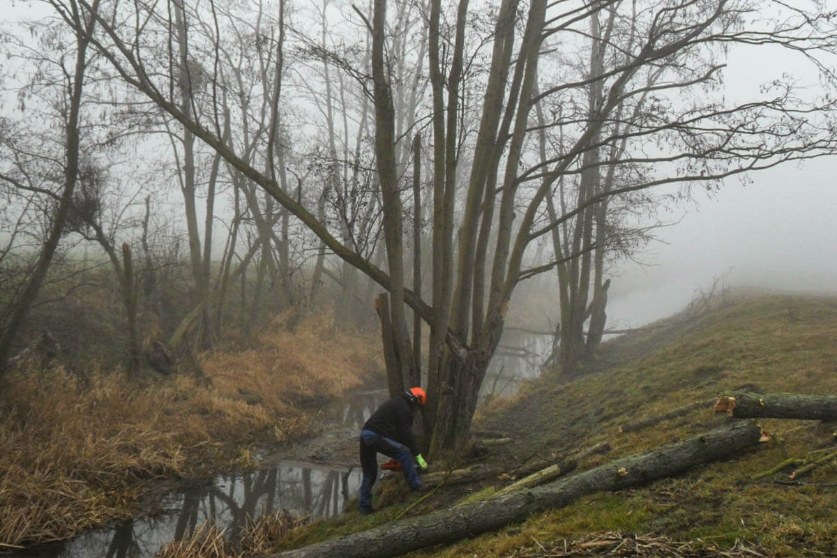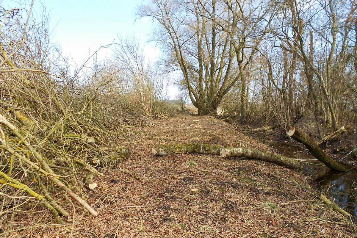 In der Gehölzpflege werden Bäume, Hecken oder Sträucher in Böschungen und Uferrandstreifen je nach Bedarf beschnitten, angepflanzt, geschützt oder im Schadensfall gefällt, bzw. beräumt.
